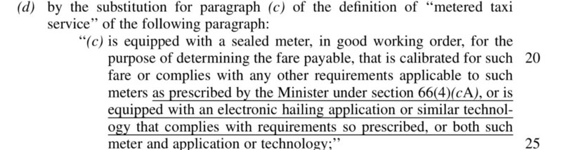 The inclusion of technology assisted ride-hail services in the definition of metered taxi