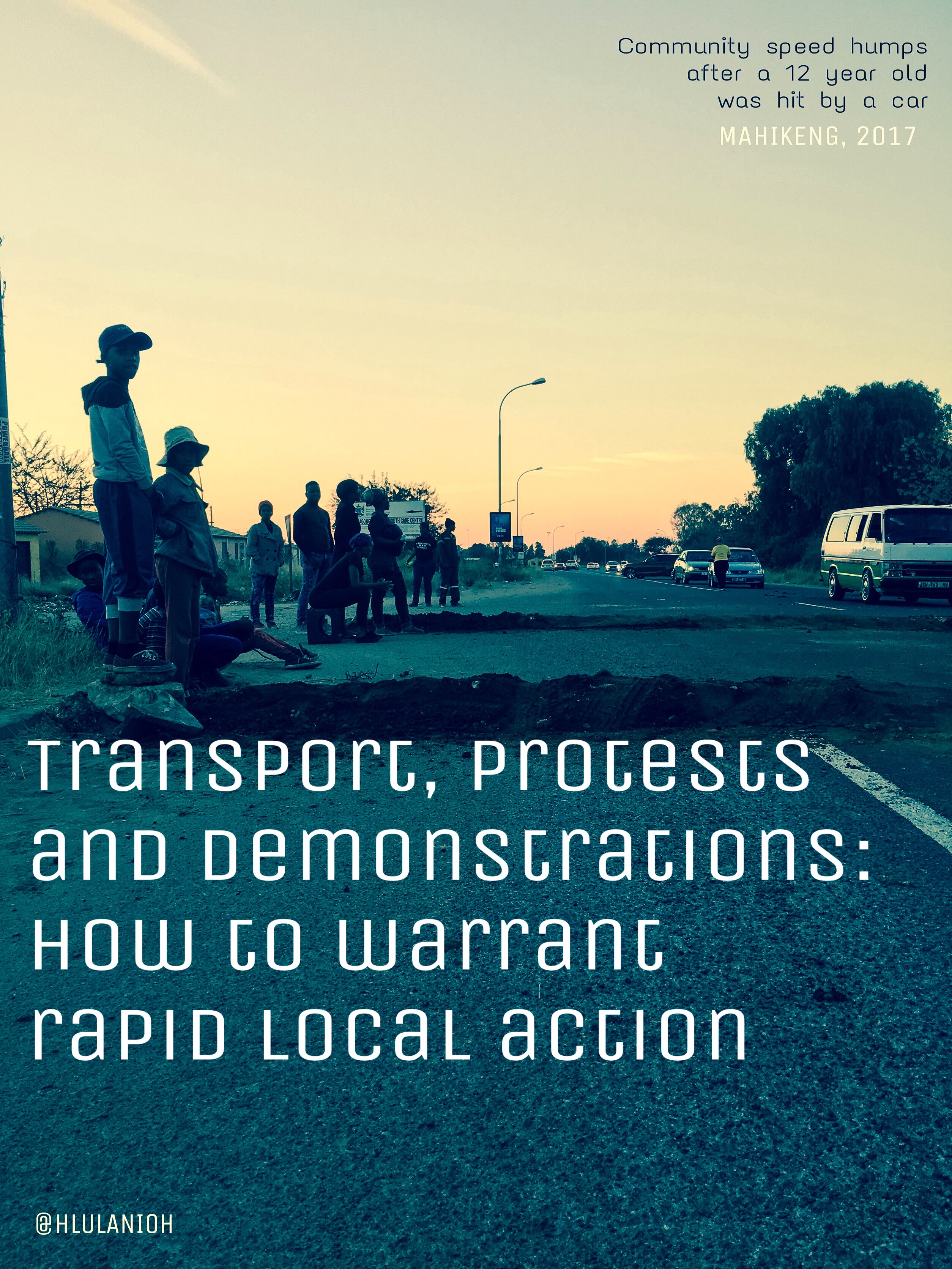 Recently in Mahikeng a family lost a 12 year old to a 60km/h speed limit cutting through a highly pedestrian dense environment. At the scene of the incident the public had build speed humps and collected funds for the grieving family. Counting the meters from impact to the batch of blood, I estimated about an 18m slingshot. Which practically through me off from a local area planning perspective. Some community leaders said that they were ready to protest; but instead hoped to demonstrate what is necessary for the patch of road.