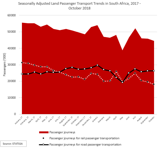 The Land Transport Survey for October 2018 was published today, with some significant changes to many of the macro-level indicators for passenger and freight transport. Read the full report click here. This data excludes minibus taxis, by the way.