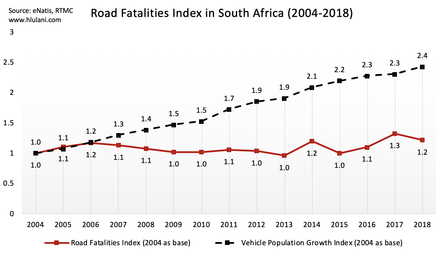 In a country with little over 1.9 million accidents, only a small fraction result in injuries and even fewer result into death. Between 2004 and 2018 an average of 11600 lives are lost, and numerous families and communities are affected. Just over 160 000 lives have been lost on our roads between 2004 and 2018, meanwhile the interventions to manage road safety come under significant scrutiny. While at face value, the Transport Minister’s position that road fatalities may be reduced by 10% during the 2019 festive season the general trend is actually downward.
