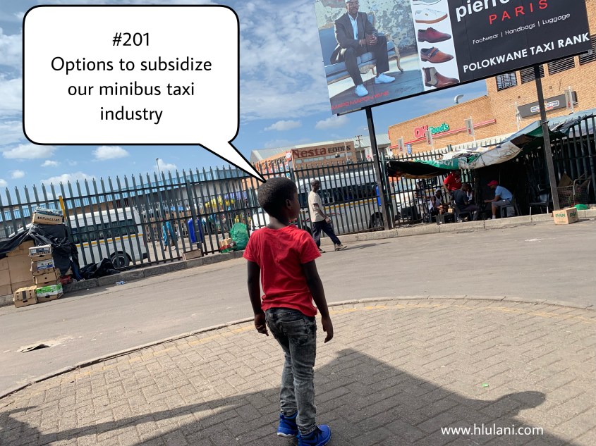 On the other hand an operator based subsidy is associated with the transportation system— not the activities within it. Infrastructure, vehicles and systems could be provided without a charge and operated by the operators. Here we have taxi ranks, road infrastructure, sheltered taxi stops and other solutions (recall Regional Kgwedi’s call to provide dedicated lanes for minibus? That’s another example). This is where the role of the Taxi Recapitalisation Programme may fit in: providing additional systematic support for the reform of the industry. Recapitalising not only the fleet but the systematic inequalities in infrastructure the industry has endured since the 1970’s. However, SANTACO’s position is important to understand because one must always ask: who will run the unified national ticketing system? How will the cashflow be managed? How will the relationship between the operator and the owner change?