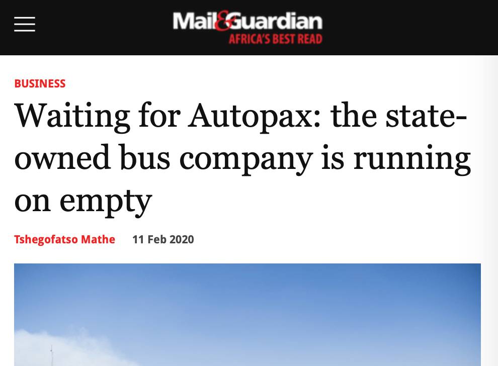 Between 2014 and 2018, Autopax accounted for 25% of PRASA’s revenue, while only transporting less than 1% of the total passengers transported by PRASA per year. Organisationally, the 2019/20 Corporate plan from PRASA places emphasis of ‘divisional alignment’, a lack thereof has impeded the potential scale effects underlying PRASA’s institutional mandate. It is difficult to tell when comprehensive divisional reports are not part of their annual report; and the Auditor General’s reports highlight uncompetitive processes across the Agency’s functions. However, I can deduce that the consistent instability at a strategic level poses as much risk as the instability found in other SOEs. How can an SOE escape a perpetual planning loop when every other year a their strategic mandate is interpreted by a board, or executives who have not built sufficient institutional memory in those positions? (Remember the stolen fleet in 2010, irregular appointment of an executive, and security service contract in the Public Protector’s derailed report?)