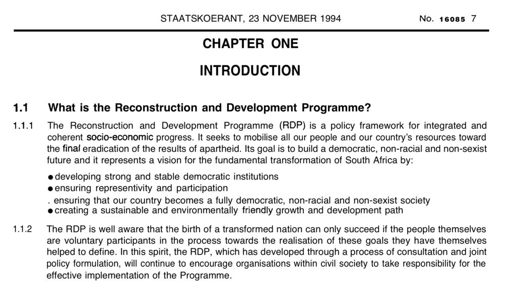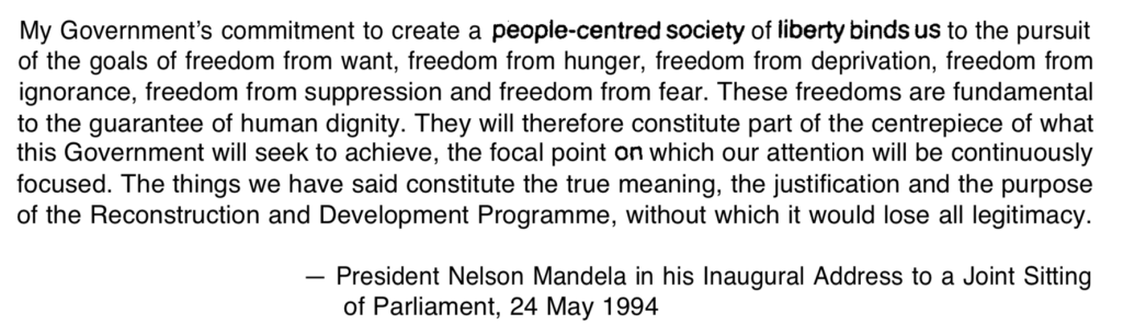 We can’t do that now, because post 1994, the Reconstruction and Development Programme (RDP) lost its philosophical underpinnings and found the convenience of tender-preneneurship, without sufficient oversight and integration. Philosophically the premise of the RDP was to empower citizens, to build their own, and become their own agents for change within a network of human settlements that liberates them. The RDP was never about housing! It was an integrated approach to socio-economic progress and eradicating the results of apartheid– it was not a short-term stint, it required consistent focus!